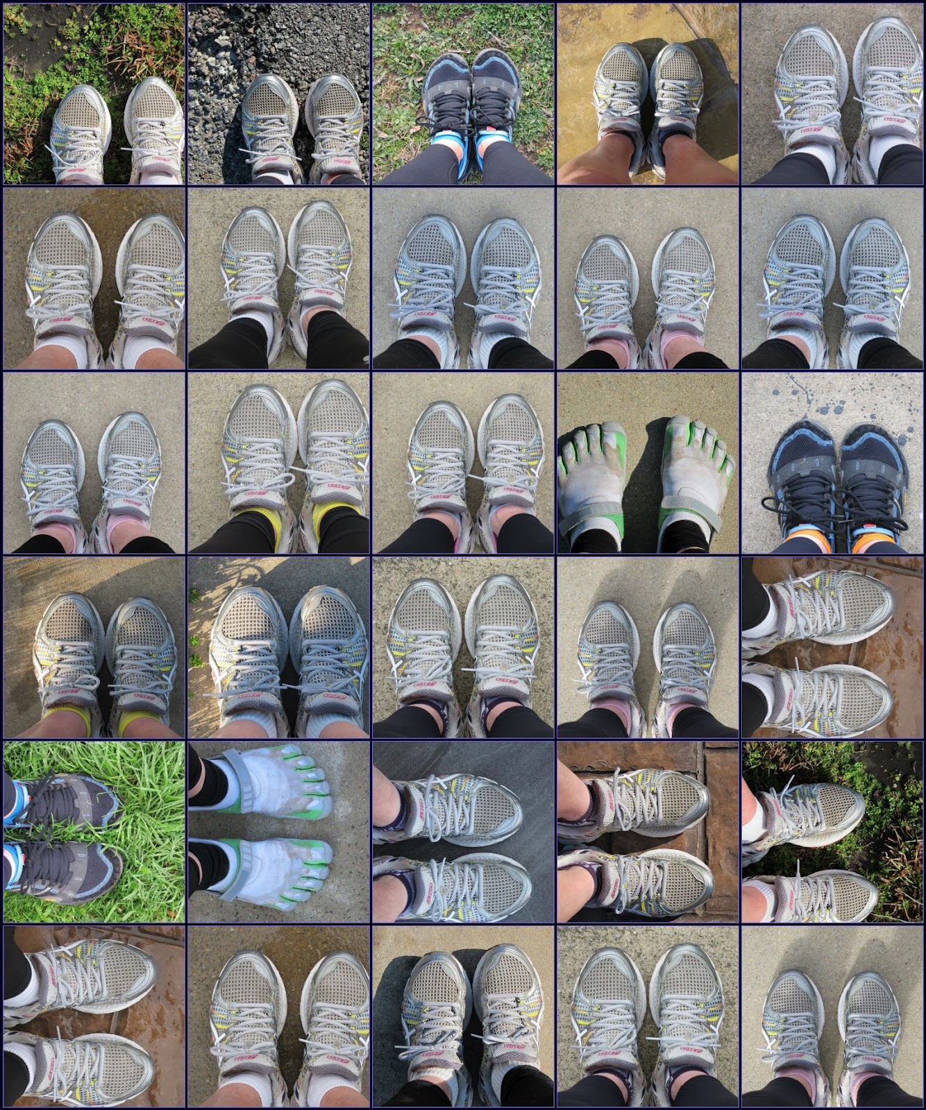 30 Consecutive Days of Running- I was beginning to think it might take 30 consecutive days of working on GIMP (open source photo software similar to photoshop) in order to create the feet collage I had imagined from the beginning of this challenge. I got the idea to try the 30 consecutive days of running after seeing a similar (possibly more professional looking) photo collage on Pinterest. I followed the link (one thing leads to another) and discovered that the author had done the Runner's World challenge of running every day from Thanksgiving to New Years. I am always optimistic that I can see something someone else has done and do it myself, sometimes I am delusional! It's possible that it is easier to run 30 consecutive days than it is to use GIMP!